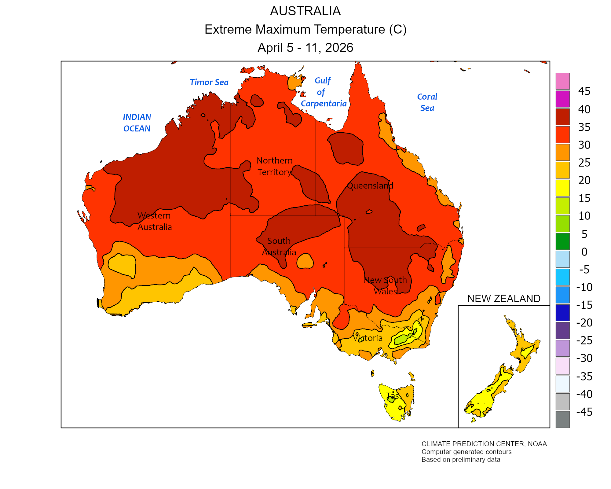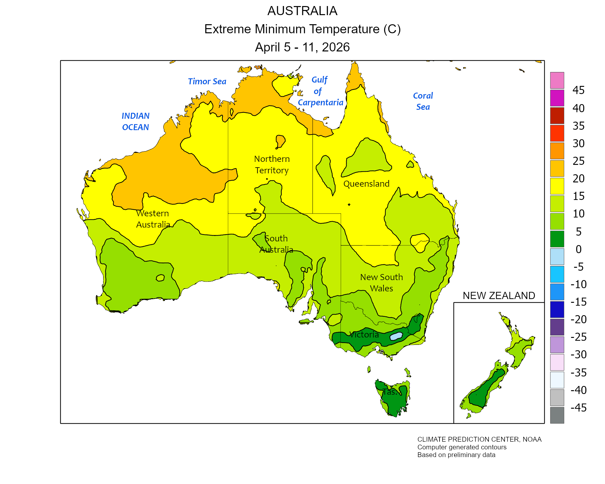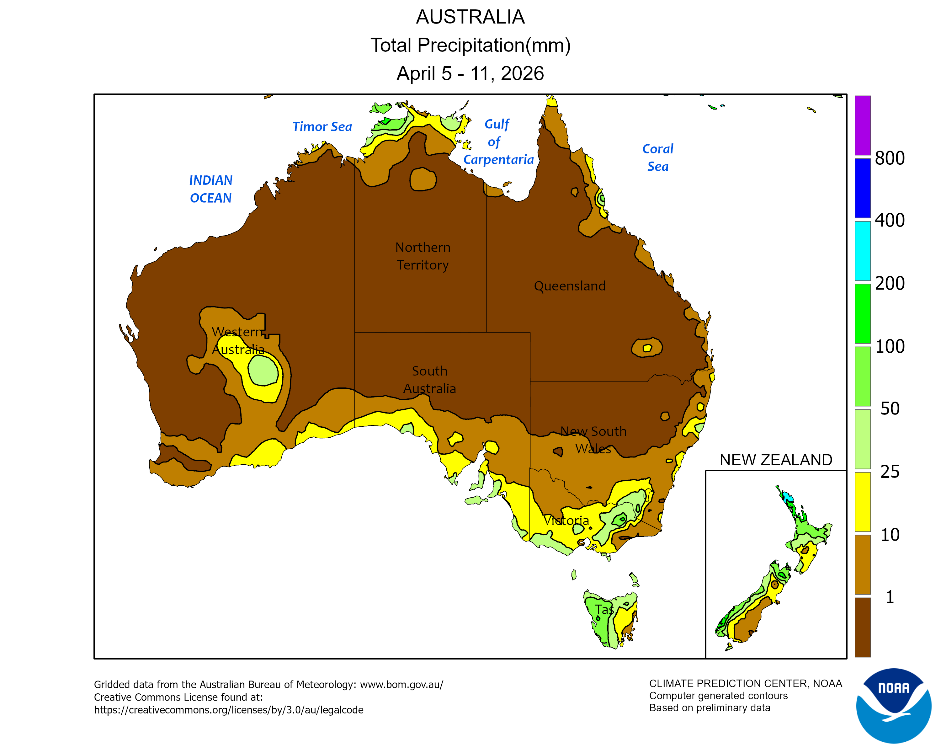 Latest climate weekly reports about precipitations and temperatures in Oceania.