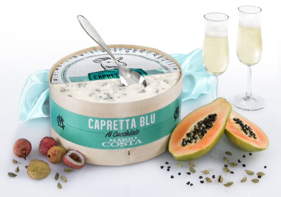Pasta unita, bianca con le tipiche screziature per lo sviluppo di muffe e dal sapore caratteristico. La particolarità di questo prodotto è la estrema cremosità, tale da renderlo un formaggio da servire “al cucchiaio”. Il gusto estremamente equilibrato lo rende unico nel panorama dei formaggi erborinati di capra.