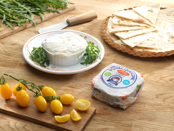 Lo Squacquerone di Romagna D.O.P. è un formaggio fresco, morbido e cremoso, tipico della tradizione casearia romagnola ottenuto da latte vaccino dei nostri soci, con una tracciabilità garantita fino alla stalla di origine, con l’aggiunta di fermenti lattici autoctoni della specie Streptococcus Thermophilus, caglio e sale.