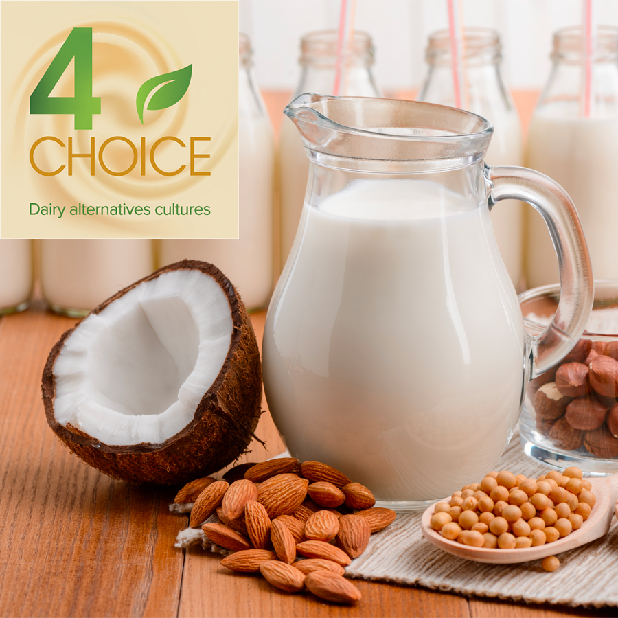 La gamma di fermenti lattici 4Choice la nuova linea di colture per prodotti fermentati di origine vegetale per andare incontro alle nuove tendenze vegane e vegetariane, per coloro che sono intolleranti ai prodotti derivanti dal latte o semplicemente per coloro che desiderano con una dieta dairy-free. Le colture della gamma 4Choice sono pure e ipoallergeniche, cioè prive di allergeni noti e prodotti derivati da animali. La gamma di fermenti lattici 4Choice è perfetta per soia, cocco, latte di riso e altri prodotti fermentati a base vegetale e garantiscono una rapida fermentazione, una buona consistenza, sviluppo di aromi e stabilità del prodotto.
