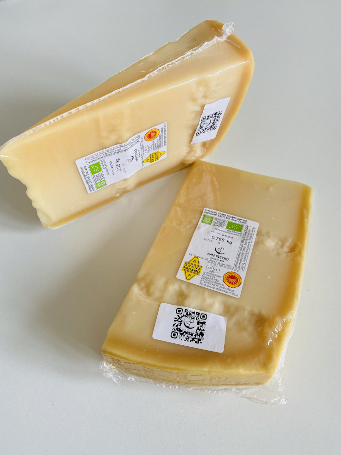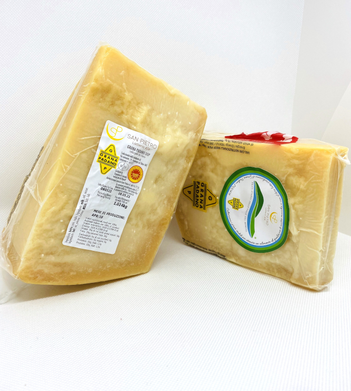 Grana Padano certificato Chalav Yisrael e adatto al consumo durante il Passover. Prodotto con latte certificato Super Kosher dall'ente israeliano Maor Hakshrut. Dal 2015 San Pietro si conferma leader nella produzione di Grana Padano Kosher.