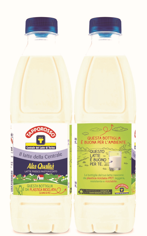 Tutte le nostre bottiglie del latte fresco ed esl in plastica PET sono state sostituite da bottiglie in plastica prodotte con rPET, un materiale derivato dal riciclo di plastica PET. Quest’ultimo è un materiale considerato “pregiato”, tra i più innovativi e orientati al futuro per la fabbricazione di imballaggi moderni. Leggero, ad elevata resistenza e lunga durata, riciclabile, non perde le sue proprietà fondamentali durante il processo di recupero e lo si può così trasformare ripetutamente per la realizzazione di prodotti pregiati.