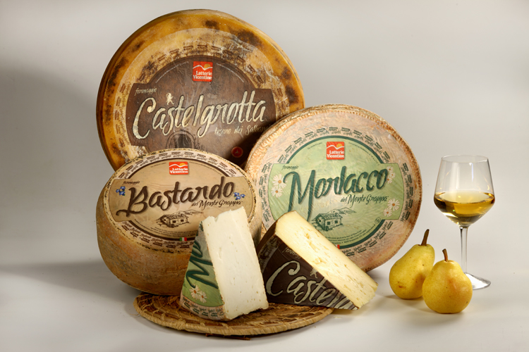 Un'altra punta di diamante di Latterie Vicentine è il Castelgrotta, un formaggio maturato per 5/6 mesi secondo la tradizionale arte della stagionatura in grotta: ne deriva un formaggio marcato e deciso, dal gusto unico, dedicato ai buongustai.