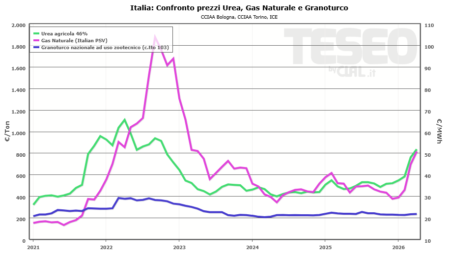 TESEO.clal.it – Italia: confronto prezzi UREA, GAS NATURALE e GRANOTURCO