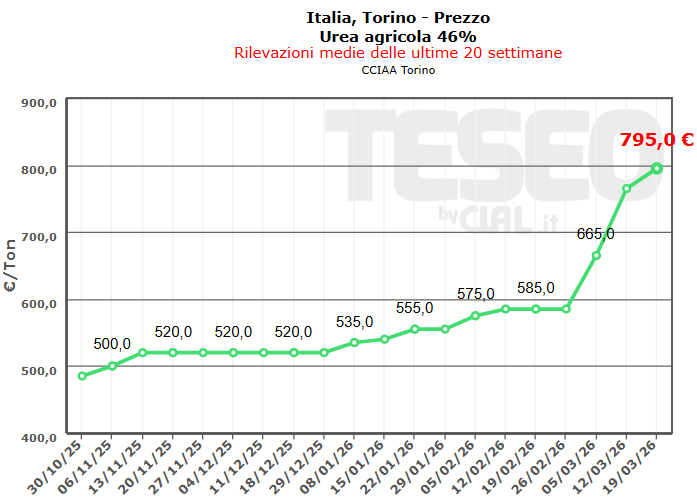 TESEO.clal.it – Italia, Torino: Prezzo Urea agricola 46%