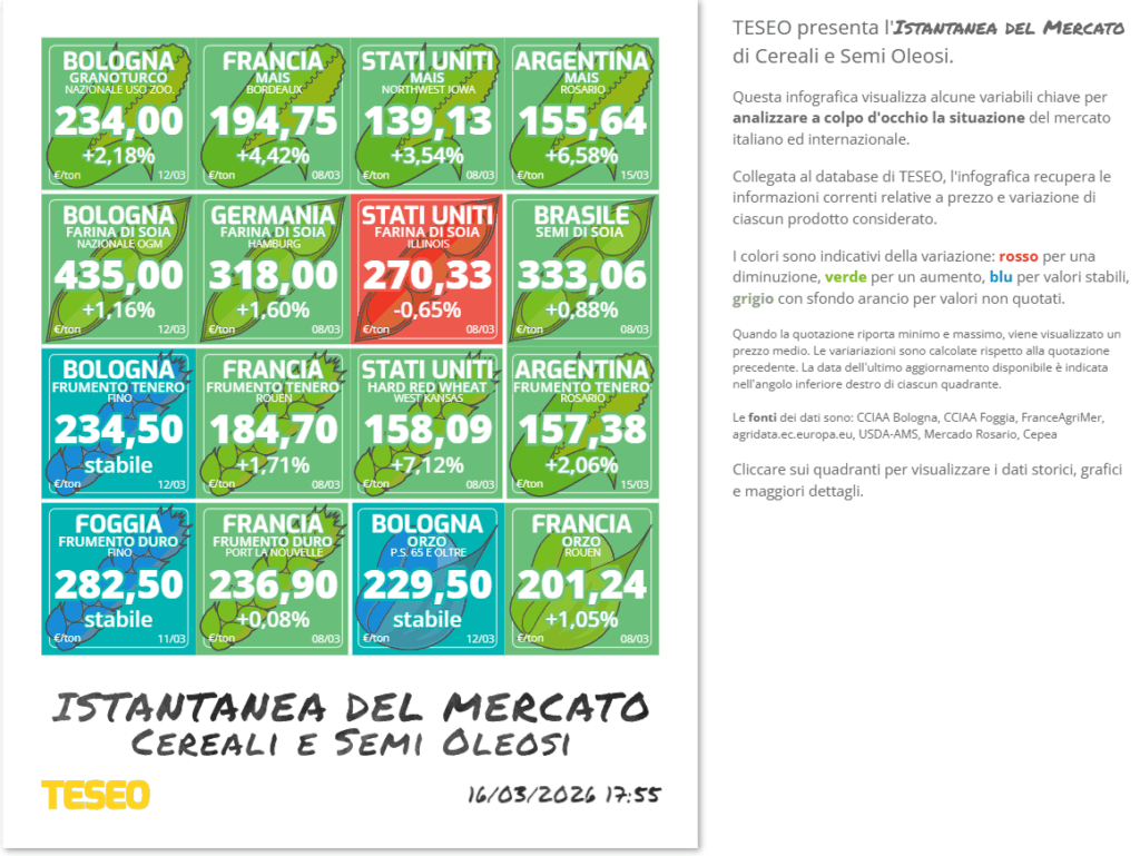 La guerra tra Russia e Ucraina e le tensioni in Medio Oriente continuano a influenzare i mercati, ponendo attenzione sui flussi nel Mar Nero, strategici per l’export di Mais e Frumento, dove anche piccoli cambiamenti nei prezzi o nelle spedizioni del Frumento russo possono riflettersi rapidamente sui mercati internazionali. Allo stesso tempo, le tensioni nello Stretto di Hormuz incidono sui costi energetici e, indirettamente, sui mercati agricoli. In Brasile, l’aumento dei prezzi del carburante incide sui costi di raccolta e semina, aggiungendo un ulteriore elemento di attenzione.